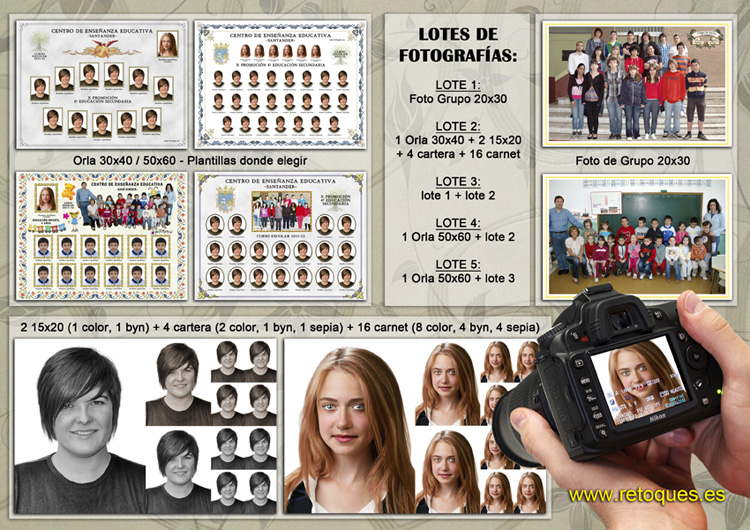 Las sesiones Fotográficas pueden ser en el Centro Educativo. Ofrecemos Calidad y Rapidez en la elaboración y entrega de las Orlas y los Lotes Fotográficos.