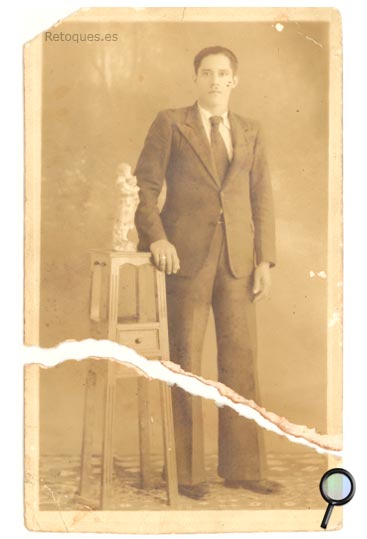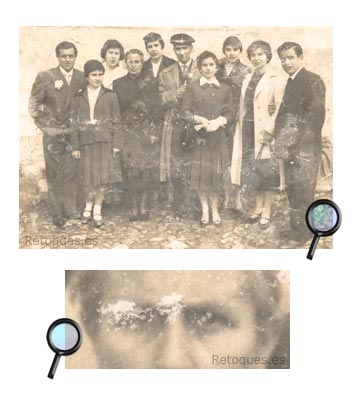 Somos especialistas en recuperar fotografías antiguas. Los retoques pueden ser sencillos o complejos, dependiendo del estado de la fotografía a restaurar y de las partes dañadas. A continuación mostramos unos ejemplos de trabajos de retoques y restauraciones (donde aparece el símbolo de una lupa al pasar el cursor por encima se alternará la foto original con la restaurada):